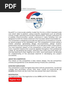 Malaysia Siswasat 2020 Competition Satellite Technology Engineering from imgv2-1-f.scribdassets.com We did not find results for: Maybe you would like to learn more about one of these? Check spelling or type a new query.